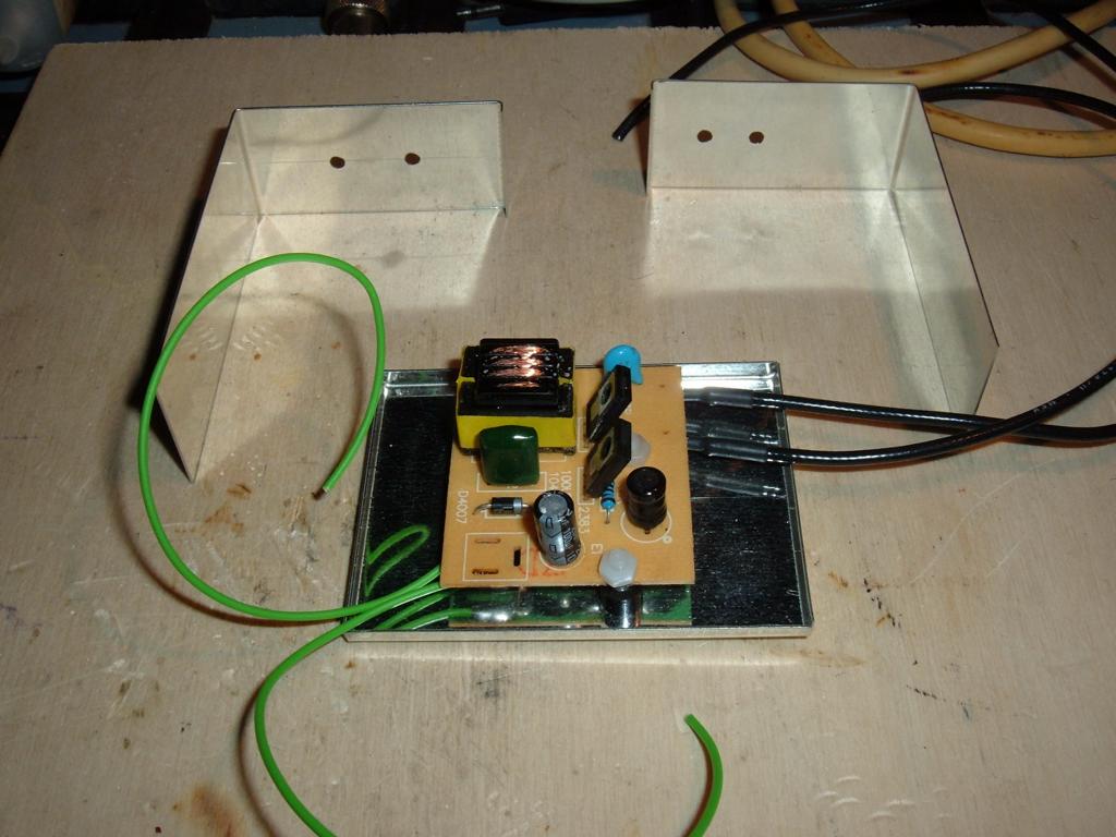 Der Inverter für den Betrieb der Neonröhre war ziemlich primitiv zusammengezimmert und ohne auch nur die kleinste Abschirmung zu besitzen einfach in den Plastikrahmen der Uhr integriert.